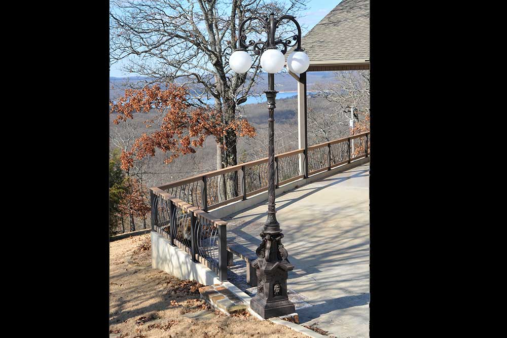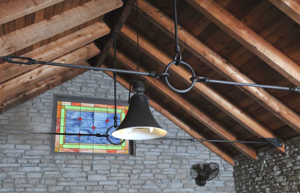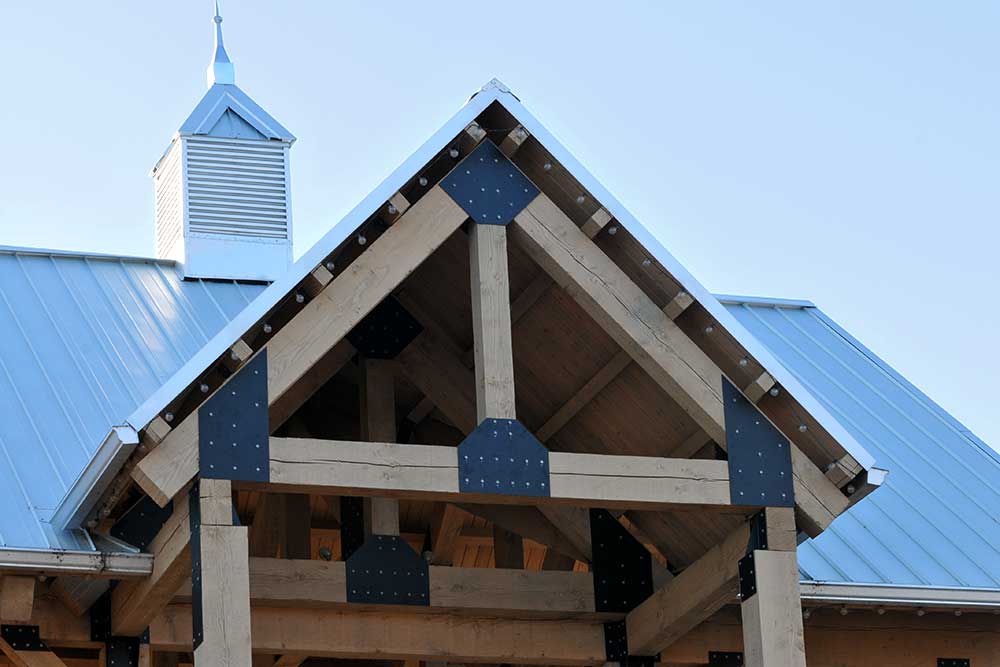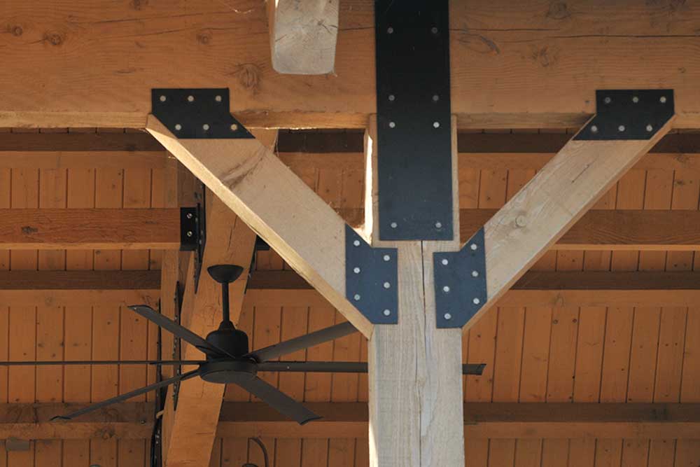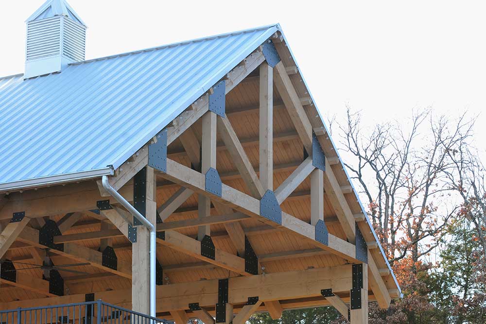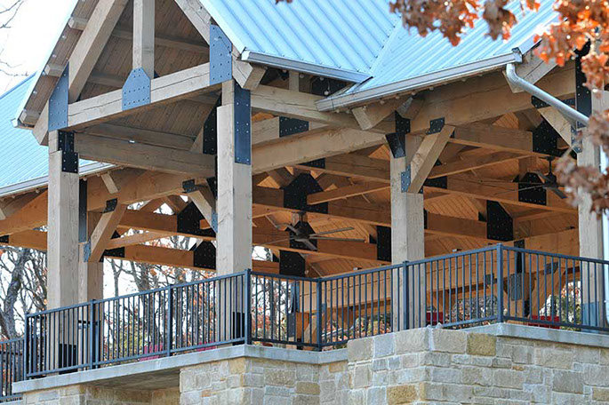 This large pavilion stands 30 feet proud of the surrounding terrain, sporting custom trusses that increase the beauty of this outdoor space. D & R Design fabricated the hardware to the specifications of the home owner.