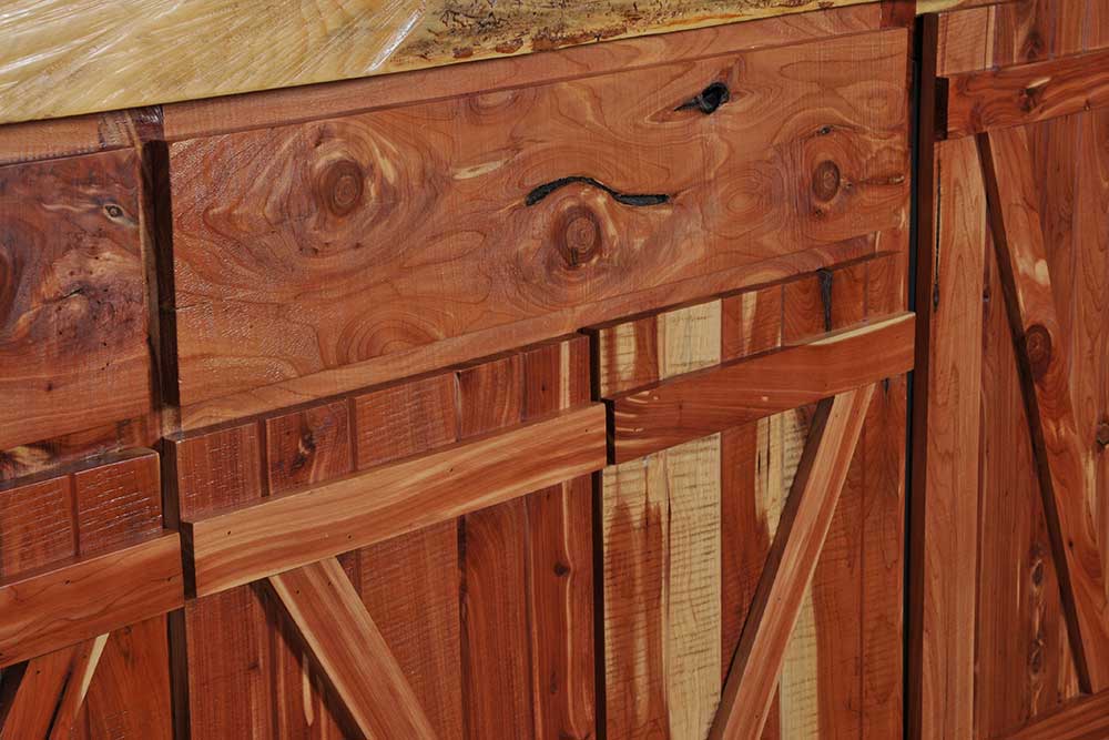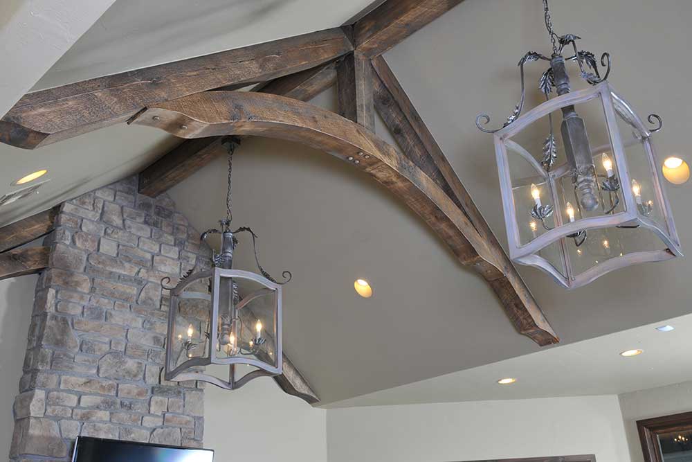 Custom trusses are a focal point inside and out, with hardware designed and built in-house for a truly one=of-a-kind look. Custom cabinetry was designed and built to satisfy the home owner's vision for each space in the home.